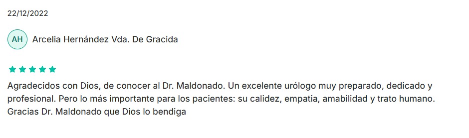 Actualmente, el Dr. Maldonado ofrece atención especializada en urología, abordando enfermedades del aparato urinario con técnicas innovadoras y mínimamente invasivas.